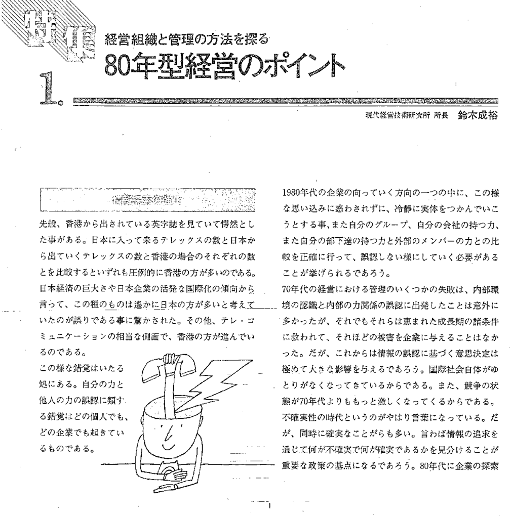 1979.2月号「ニッセイ経営情報」(日本生命保険相互会社発行)特集 経営組織と管理の方法を探る欄「1.80年型経営のポイント」