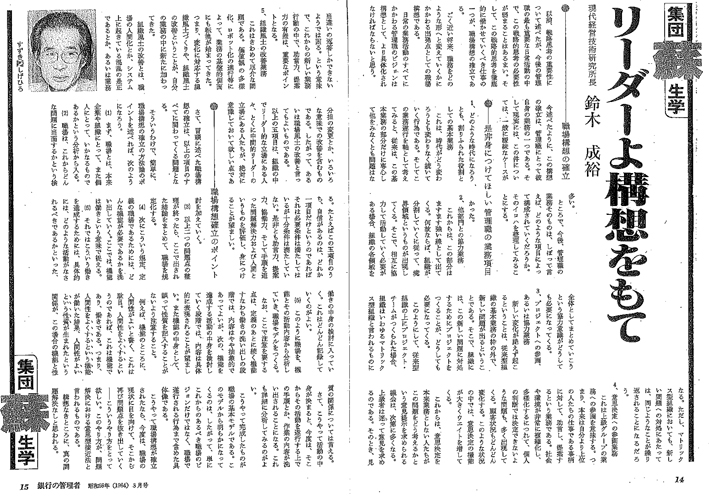 (「銀行の管理者」3月号”集団蘇生学”蘭 昭和59年3月1日(株)近代セールス社発行)」