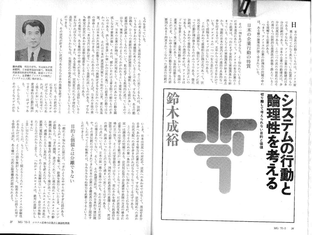 S.44・12 月 鈴木成裕著 「システムと人間」-70 年代の幹部行動学-((社) 日本能率協会)刊