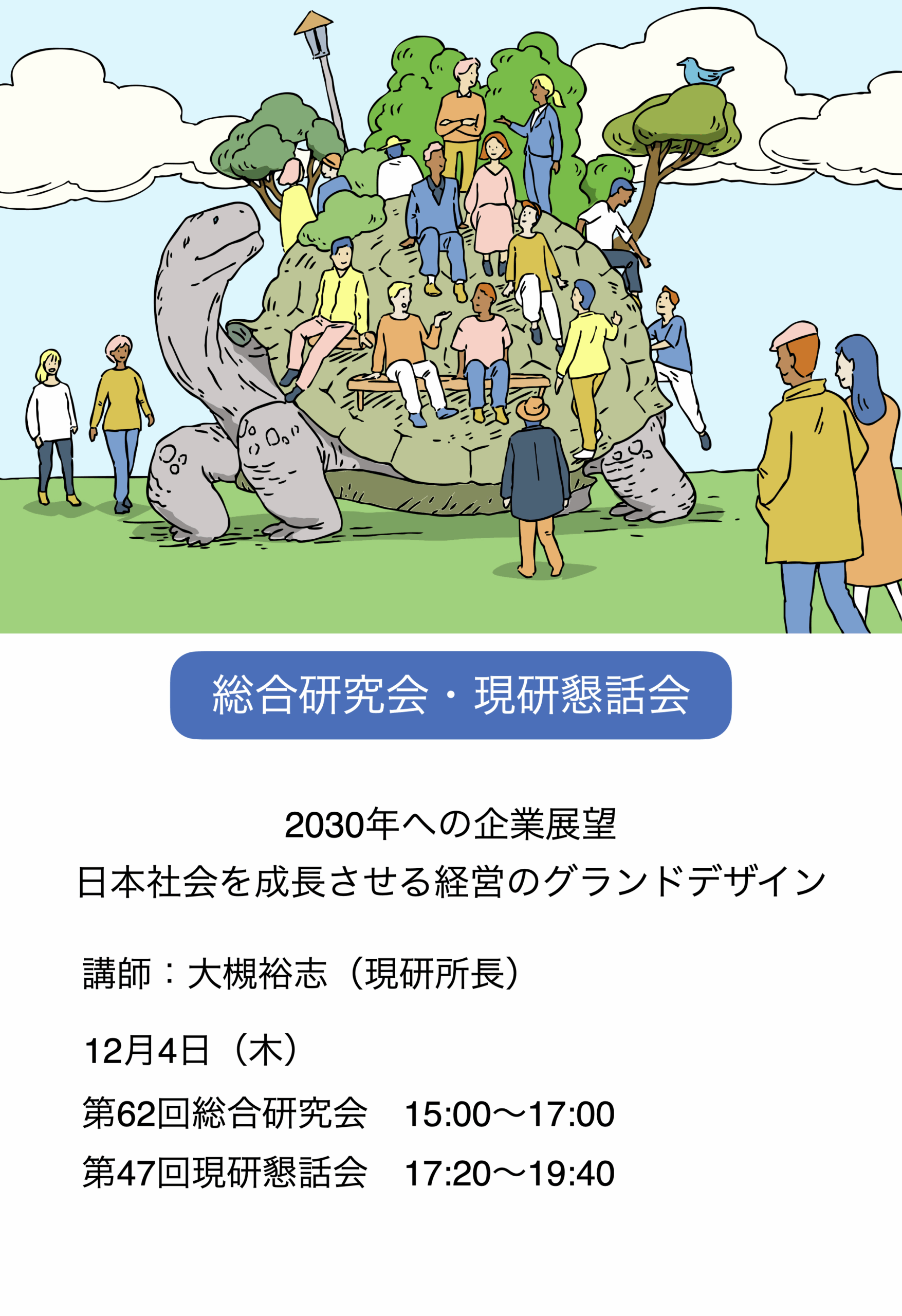 現研研究会のねらいは、創業以来一貫して、企業組織または企業経営者・管理者の現在抱えている問題解決のみならず、将来当面する問題の予測・分析・対応行動の確立を計ることにあります。